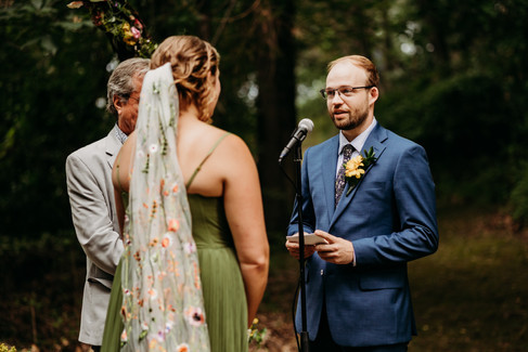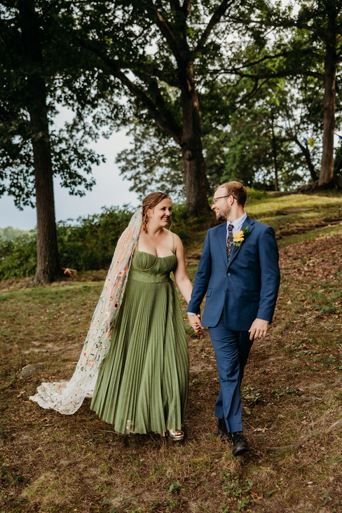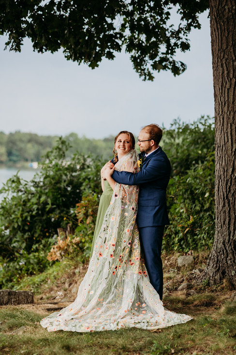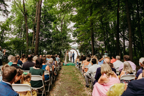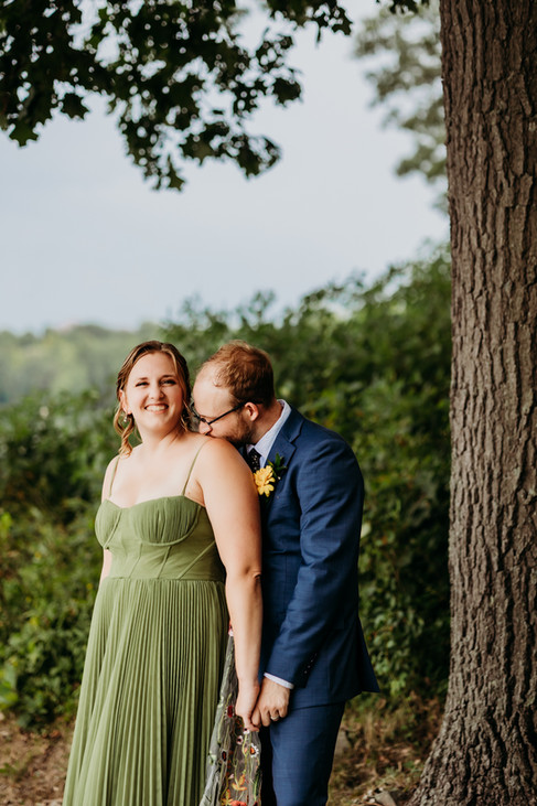 Picture this: a bounce house for the kids (and let's be honest, some adults too), giant bubble making stations, a glitter bar where guests could add some sparkle to their day, and flower crown making for anyone who wanted to feel extra magical. A food truck served up delicious eats, and then there was the pièce de résistance - a train made by Corey's grandpa and family that carried guests through acres of their stunning lakeside family property. It was like stepping into the most wonderful, whimsical dream.